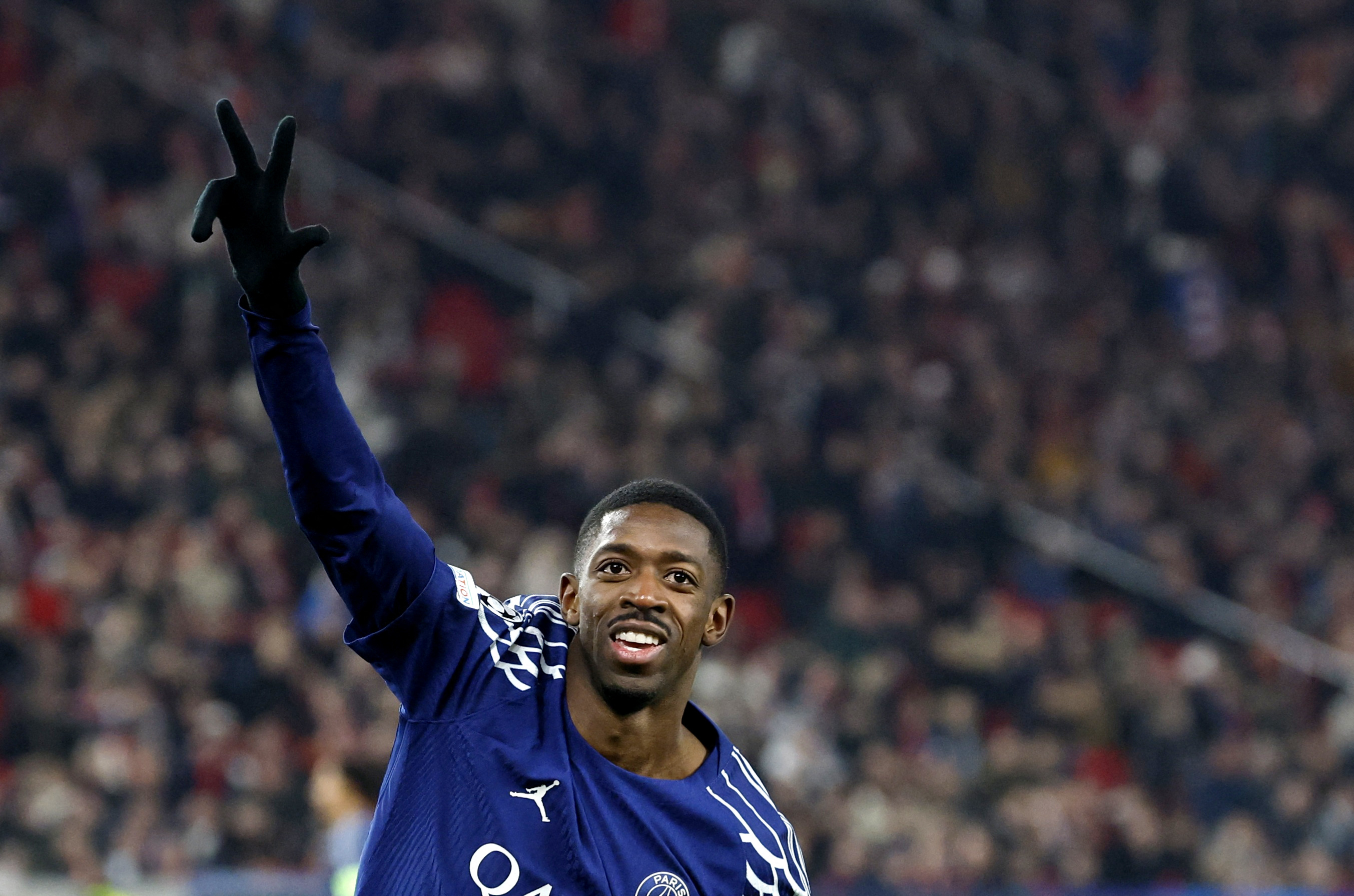 图为登贝莱在欧冠比赛进球后庆祝。新华社/路透